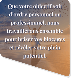 Si vous souhaitez un changement réel, concretetdurable dans votre vie, ce coaching est pour vous. Ensemble, nous travaillerons à créer une transformation alignée avec vos valeurs et vos aspirations.